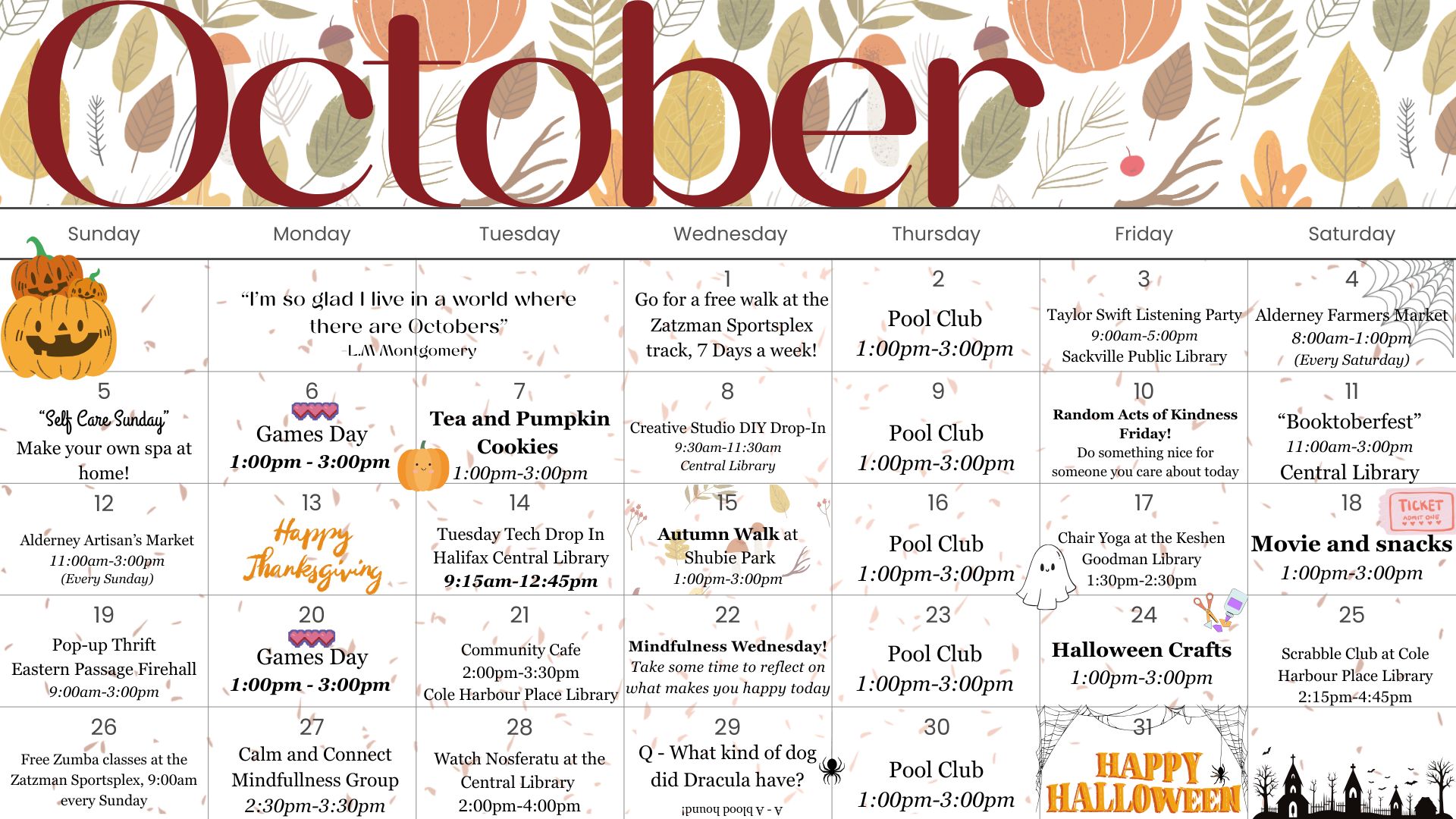 October 3rd – Taylor Swift Listening Party, 9:00am-5:00pm, Sackville Public Library