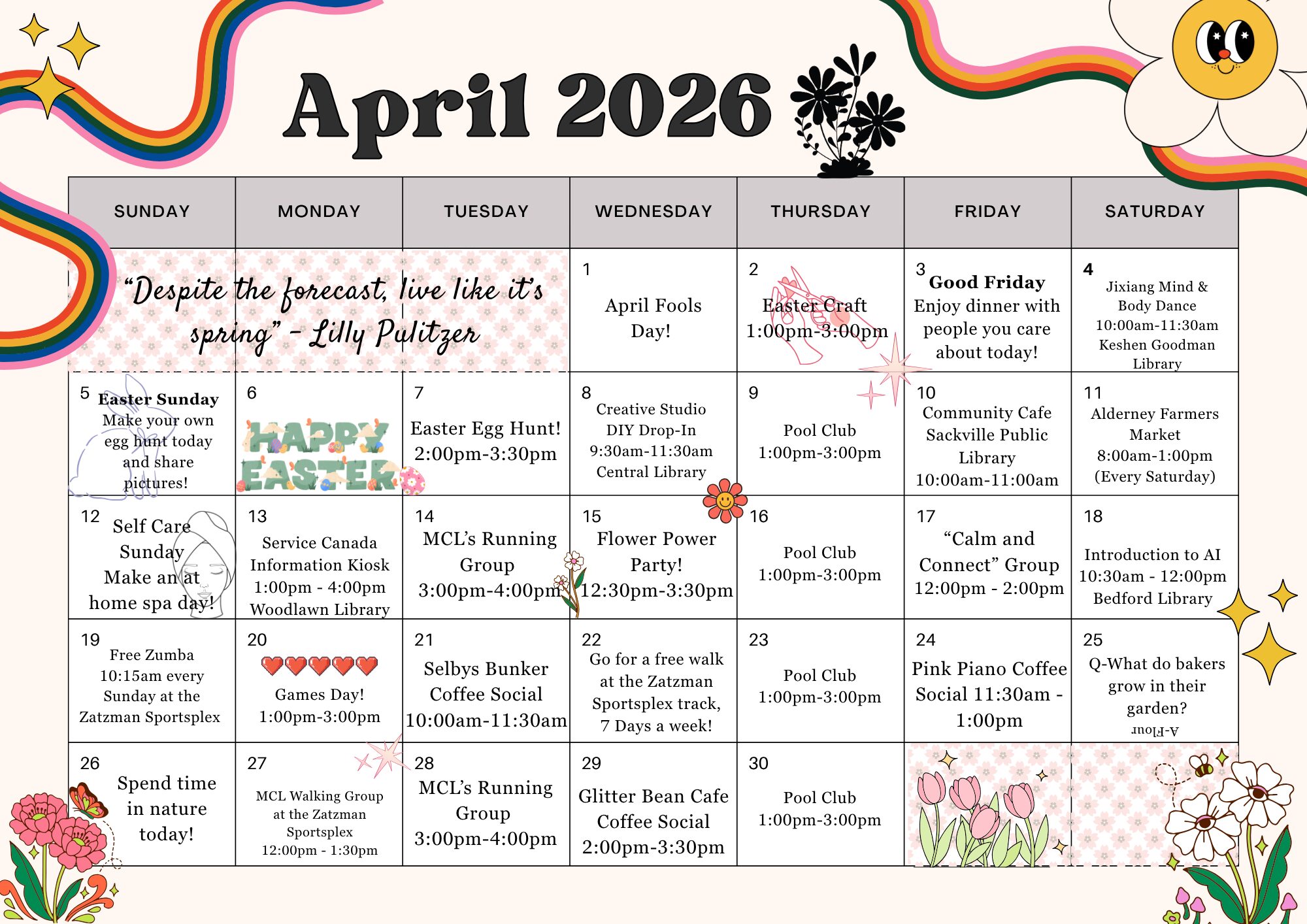 April 10th – Community Cafe Sackville Public Library 10:00am – 11:00am